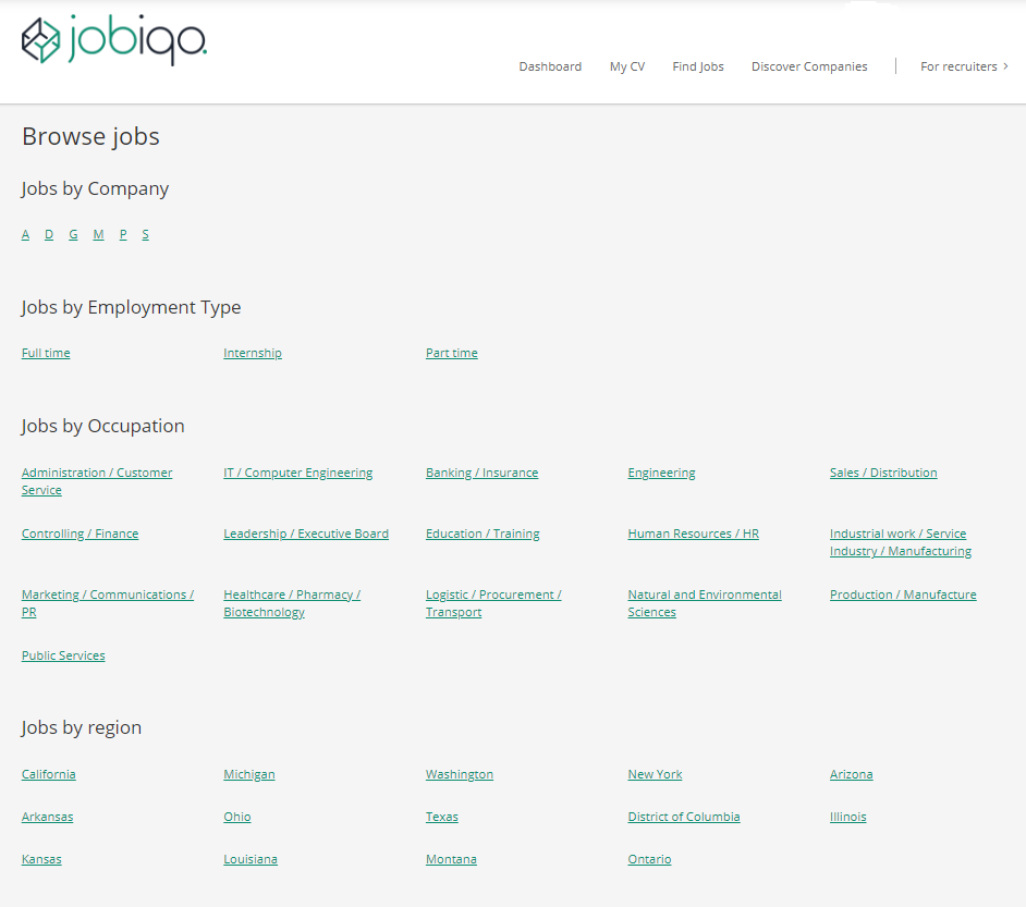 The SEO Search Sitemap feature provides a structured sitemap interface. The main purpose of the feature is to help improve internal linking structure, making it easier and more efficient for search engines (Google, Bing etc.) to discover and index your most important search pages. Additionally, for users this offers an alternative way to browse and discover jobs.